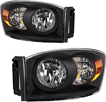 Amazon Com Autosaver88 Conjunto De Faros Delanteros Compatible Con 2007 2008 Dodge Ram 1500 2500 3500 Pickup Faro De Repuesto Negro Carcasa Ambar Reflector Lente Transparente Automotriz